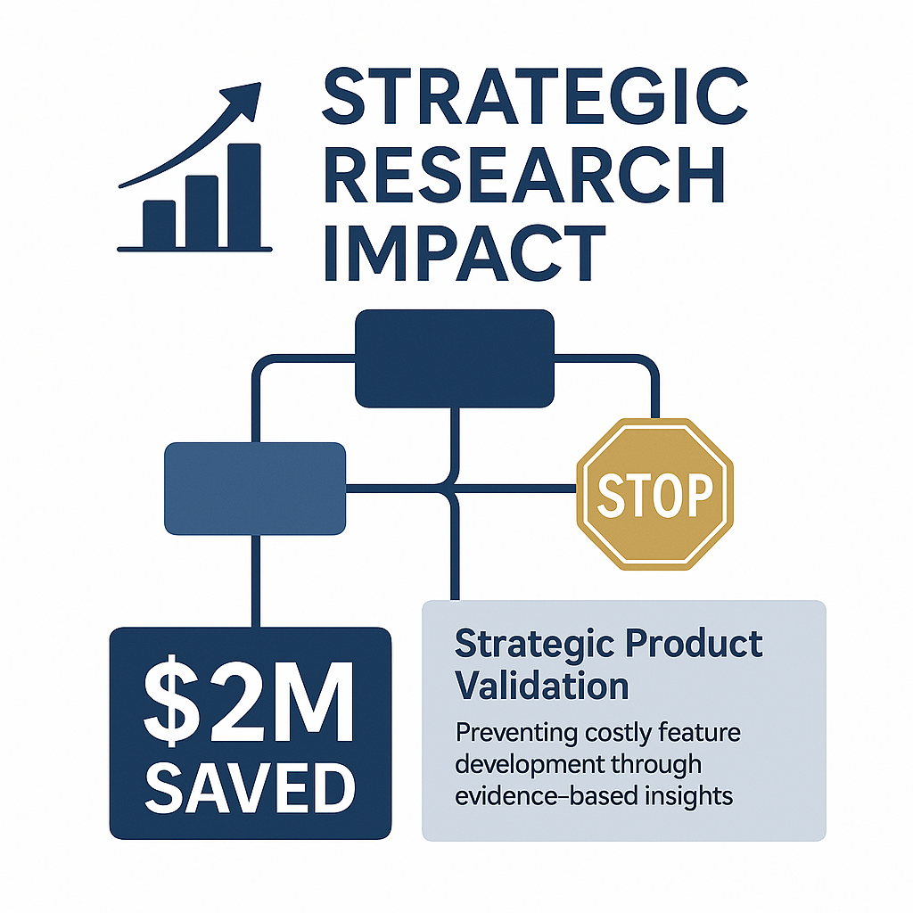 Strategic research reframing that prevented $2M+ investment in an unvalidated product. Challenged leadership assumptions with evidence-based insights, redirecting engineering resources toward proven user needs and measurable business outcomes.