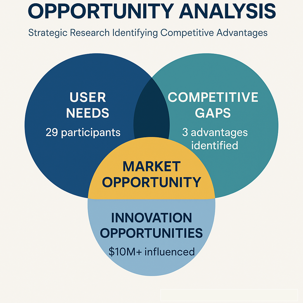 Strategic research initiative that identified game-changing competitive differentiators while validating resource allocation for $10M+ in development priorities. Transformed scattered product ideas into cohesive strategy for market leadership.